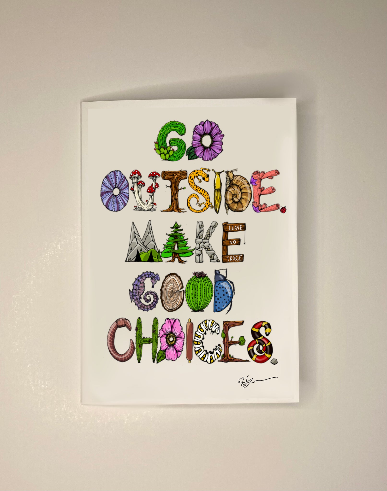 5x7 greeting card with artwork by Heidi Garner.  Packaged in clear bags brand sleeve with an A7 size envelope made with recycled materials.